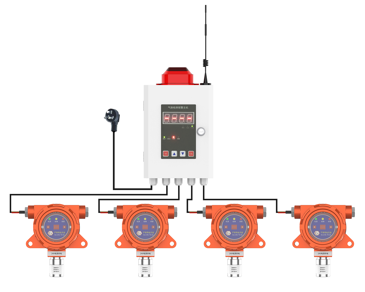 可與氣體報(bào)警控制器ES90C00-4連接,控制器可集成無線聯(lián)網(wǎng)模塊,集中數(shù)據(jù)上傳,同時(shí)可聯(lián)動(dòng)電磁閥、風(fēng)機(jī)等外部設(shè)備。
