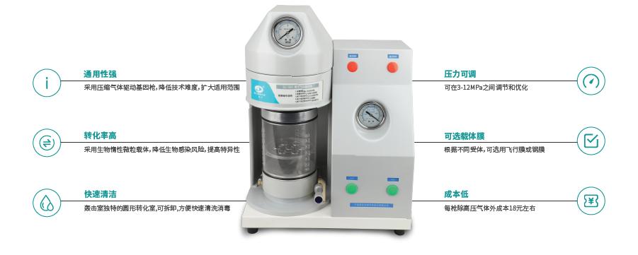 ? 通用性強 采用壓縮氣體驅動基因槍,降低技術難度,擴大適用范圍